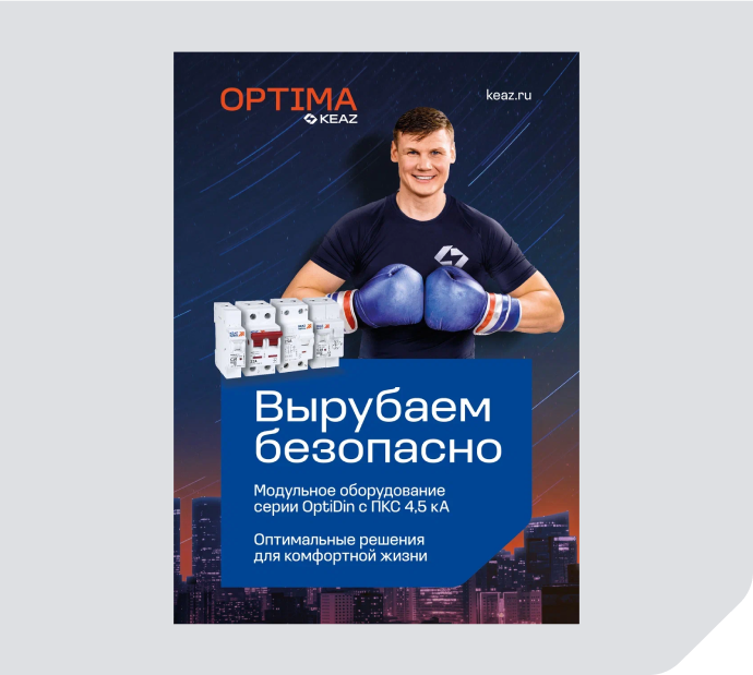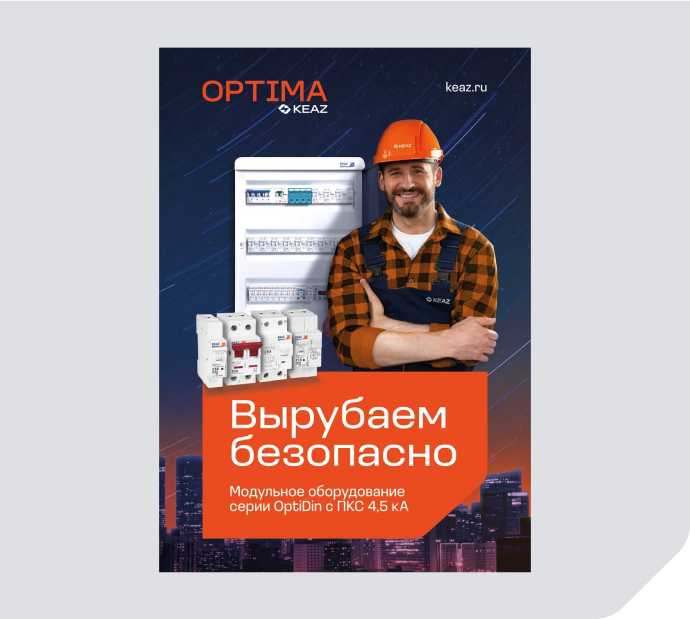 Листовка в формате А4 с подробным описанием технических характеристик серии OptiDin с ПКС 4,5 кА для размещения в торговых точках.